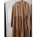 Çizgili Keten Elbise - Vizon