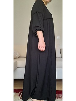 Düğmeli Tesettür Ayrobin Elbise - Siyah