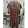 Yaprak Desenli Krep Kumaş Elbise - Kahverengi