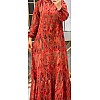Yaprak Desenli Krep Kumaş Elbise - Kırmızı